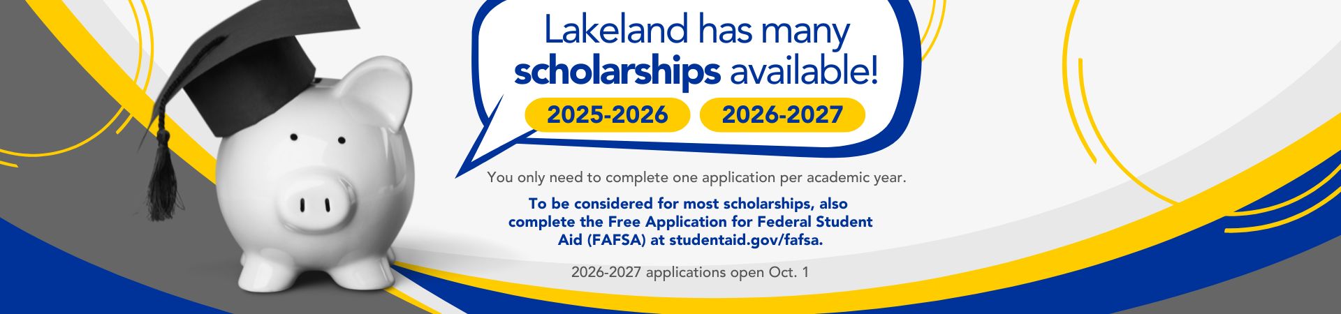 The key to financing your education is to start planning early so that you will be better prepared to pay for college. To that effort, we encourage all students to complete the Free Application for Federal Student Aid (FAFSA) to determine eligibility for grants and other aid at studentaid.gov/fafsa. Lakeland's federal school code is 006804. Additionally, we recommend that all students complete the Lakeland Foundation Scholarship Application, which can be found at myLakeland in the Scholarship Center, located under myRECORDS.